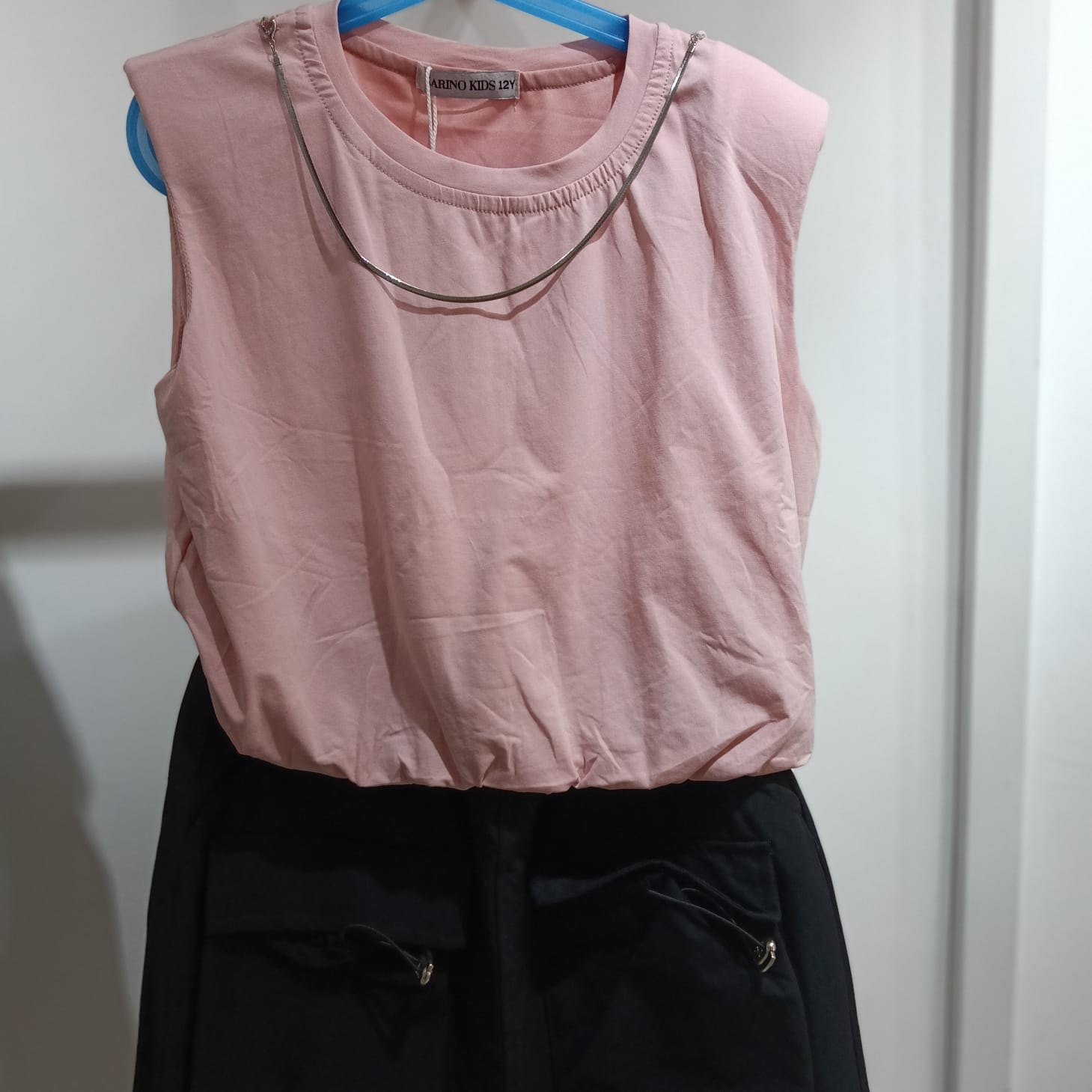 Con “Pink Power”, lo stile incontra il comfort in un completo pensato per bambine dinamiche e sicure di se. Il set include una maglietta rosa con delicata imbottitura sulle spalle, realizzata in 95% cotone per offrire morbidezza e libertà di movimento. La protagonista? La gonnellina nera che e in realta un pantaloncino, perfetta per giocare, saltare e muoversi in tutta libertà senza rinunciare allo stile. Un capo furbo, comodo ed elegante allo stesso tempo.A completare il look, una collanina snake piatto dal tocco fashion, che aggiunge un accento brillante e moderno a questo outfit pensato per ogni occasione: da una festa di compleanno a una passeggiata con stile.